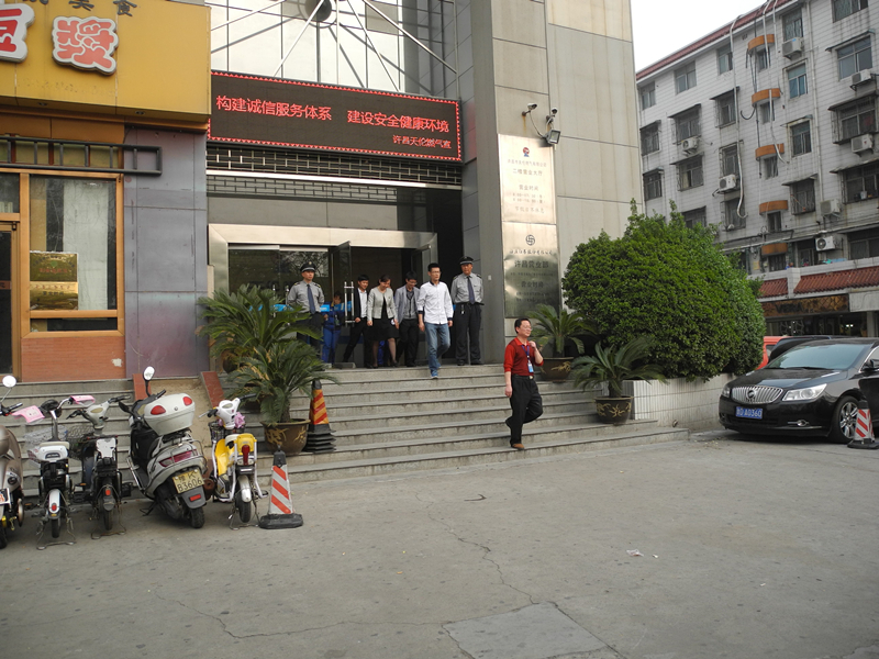許昌市天倫燃?xì)庥邢薰疚飿I(yè)人員接到擬定的大廈火災(zāi)報(bào)警后,第一時(shí)間趕到現(xiàn)場(chǎng),首先利用滅火器進(jìn)行了初期火苗控制,同時(shí)將火情上報(bào)總經(jīng)理,針對(duì)火情,總經(jīng)理下達(dá)啟動(dòng)消防預(yù)案指令,物業(yè)人員迅速啟動(dòng)消防警報(bào)、關(guān)閉樓層電源,電梯迫降1樓。